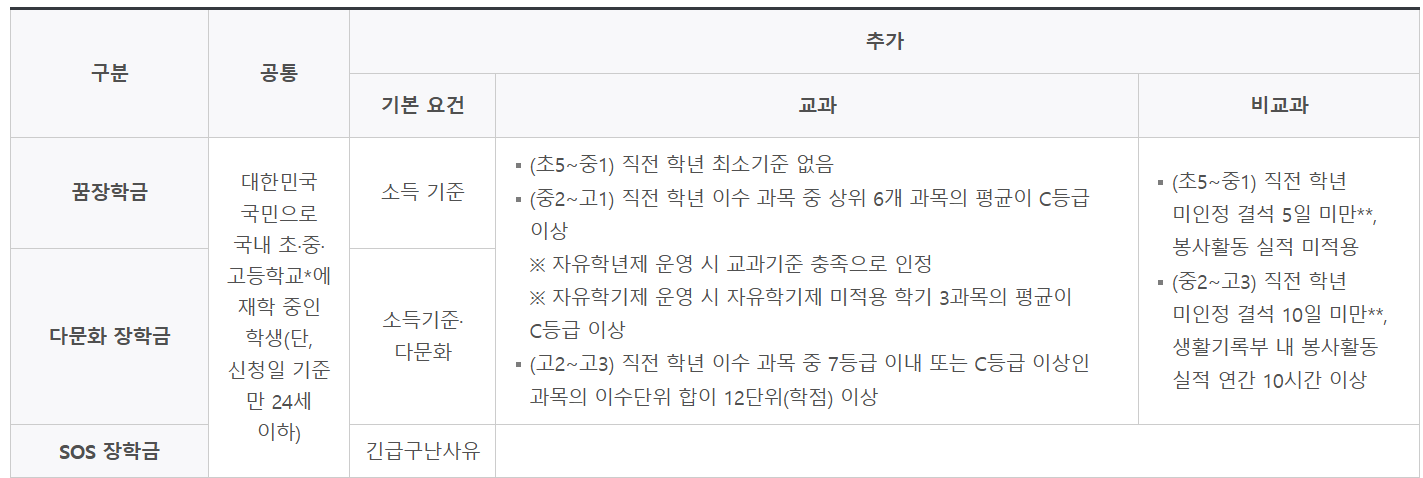 ⭐꿈사다리 장학금 신청 자격 및 조건